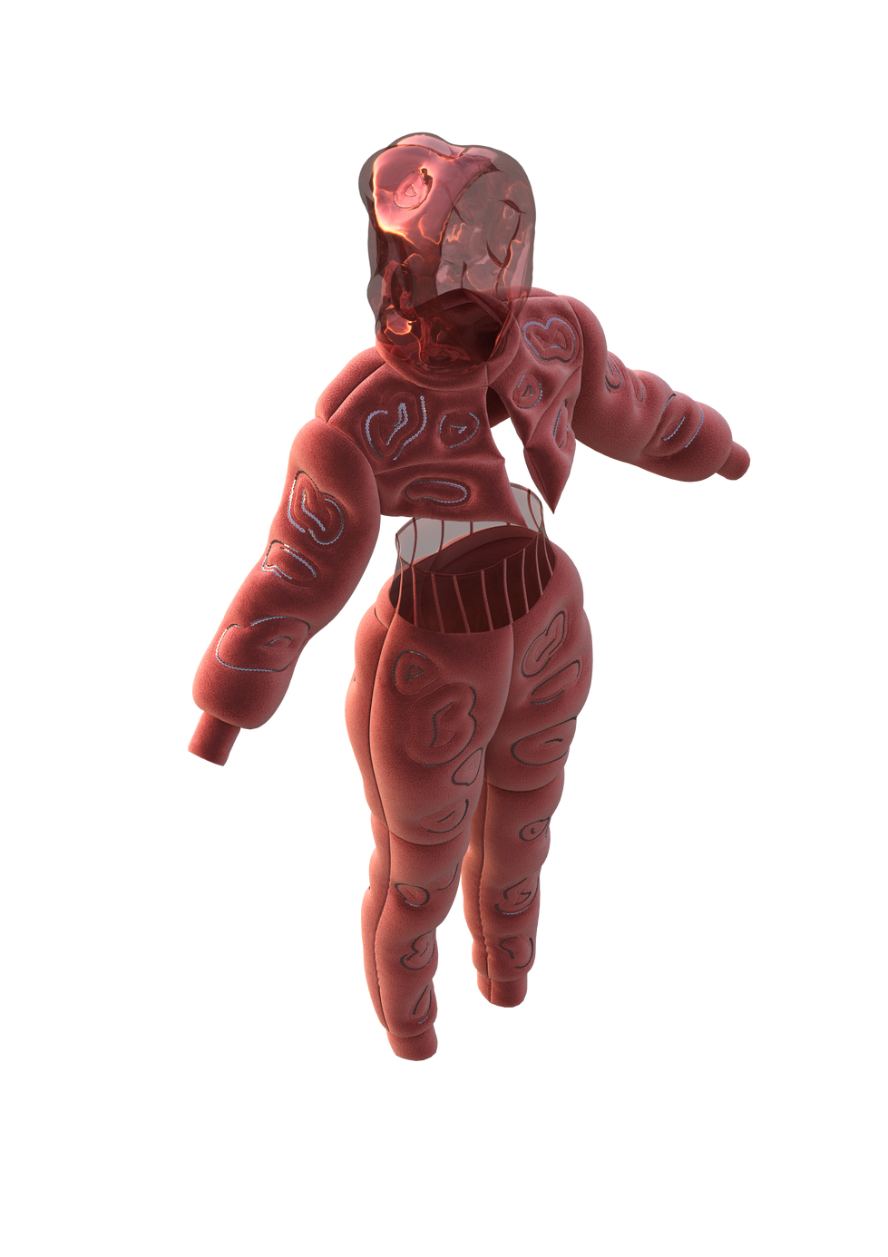 An avante garde puffer set with different fabrics, textures and embellishments.